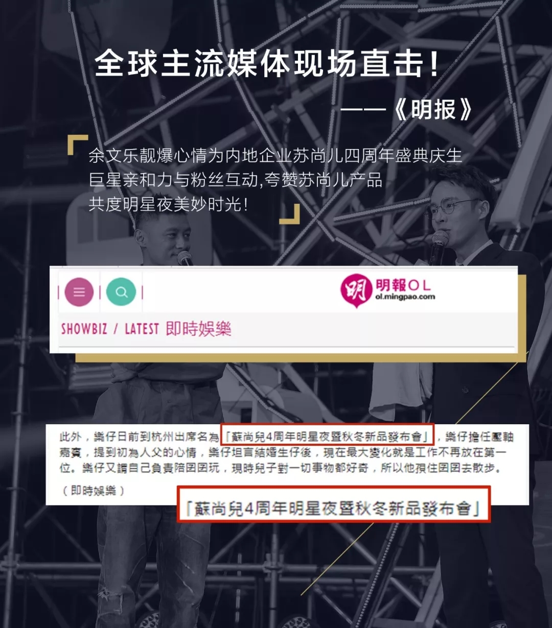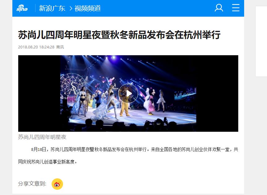 騰訊網、中國(guó)服裝網等各大(dà)媒體(tǐ)對(duì)蘇尚兒(ér)四周年(nián)盛典發來(lái)報(bào)道(dào)
