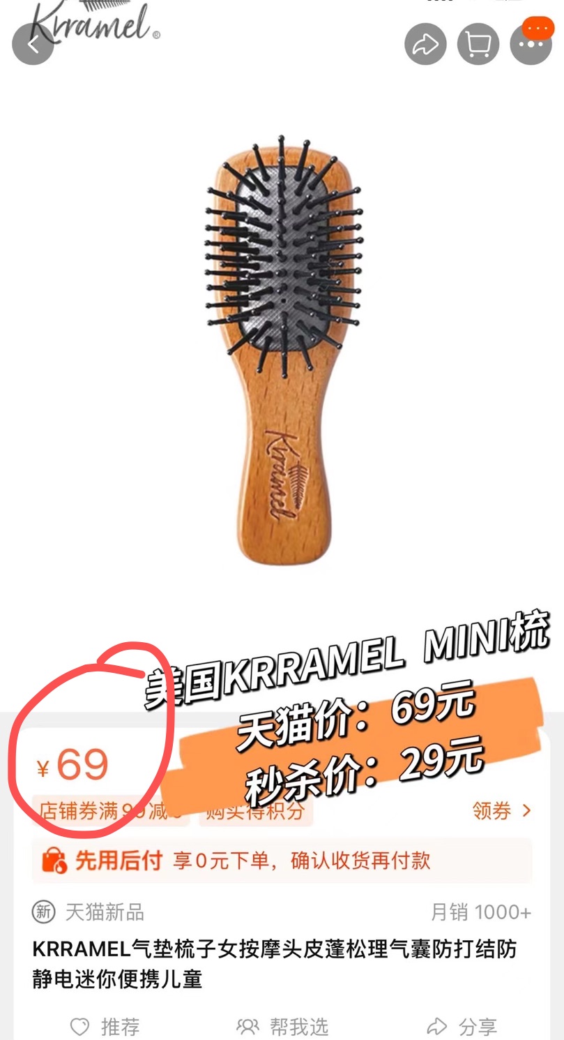 美(měi)國(guó)棵沐KRRAMEL mini小(xiǎo)梳子(zǐ)