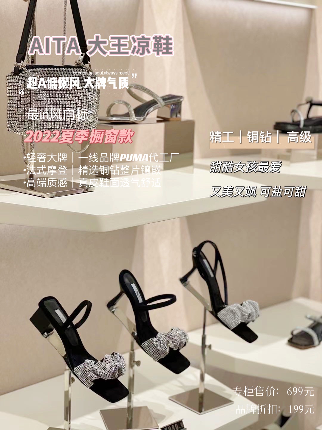 夏天,最不(bù)容錯(cuò)過的(de)鑽石涼鞋,隻是(shì)放(fàng)著(zhe)就(jiù)能(néng)光(guāng)芒四射,看(≠kàn)一(yī)眼就(jiù)會(huì)心髒怦怦跳(tiào)!